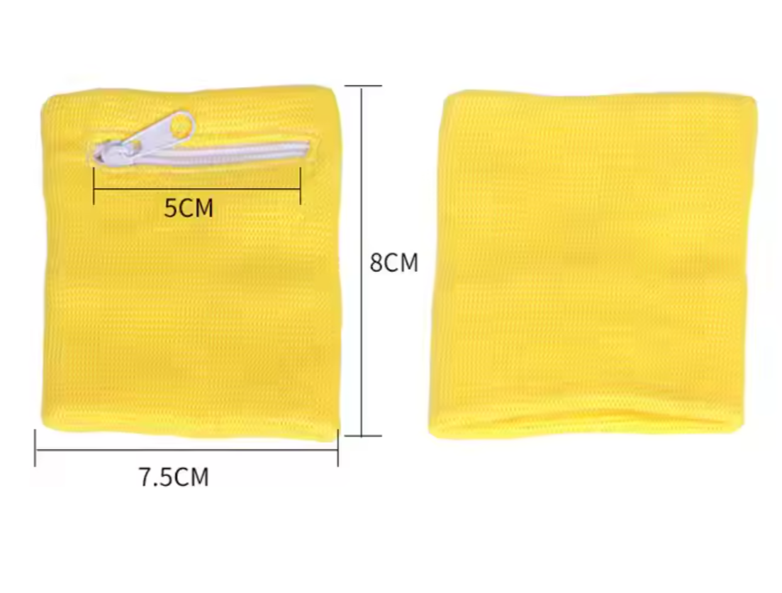 8x8cm Unisex Breathable Wallet Cotton Wristband or Ankle Sweatband For Sports With Zipper