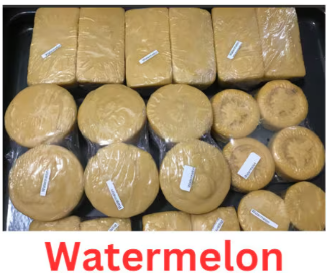 Note: Watermelon soap is often made with watermelon extract, which is rich in vitamins A and C, as well as lycopene, an antioxidant that helps to protect the skin and hair from damage.